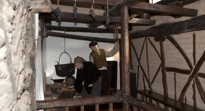 En su interior recorreremos las distintas dependencias que componen la vivienda: la cantina, la cocina, la cuadra, el lagar e incluso su propia bodega subterránea, tan característica de la comarca. También veremos cómo se elaboraba el vino, el pan y otras viandas procedentes de la matanza.