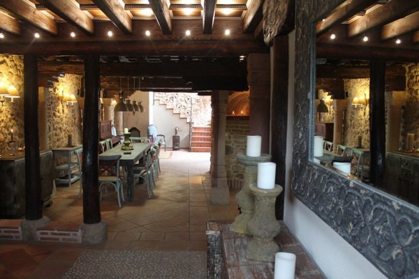 Un antiguo horno es la parte central de la primera planta. Alrededor, un gran salón con columnas de piedra labradas que sujetan el edificio es iluminado por un gran patio interior con barbacoa, ideal para pasar las tardes y noches estivales.